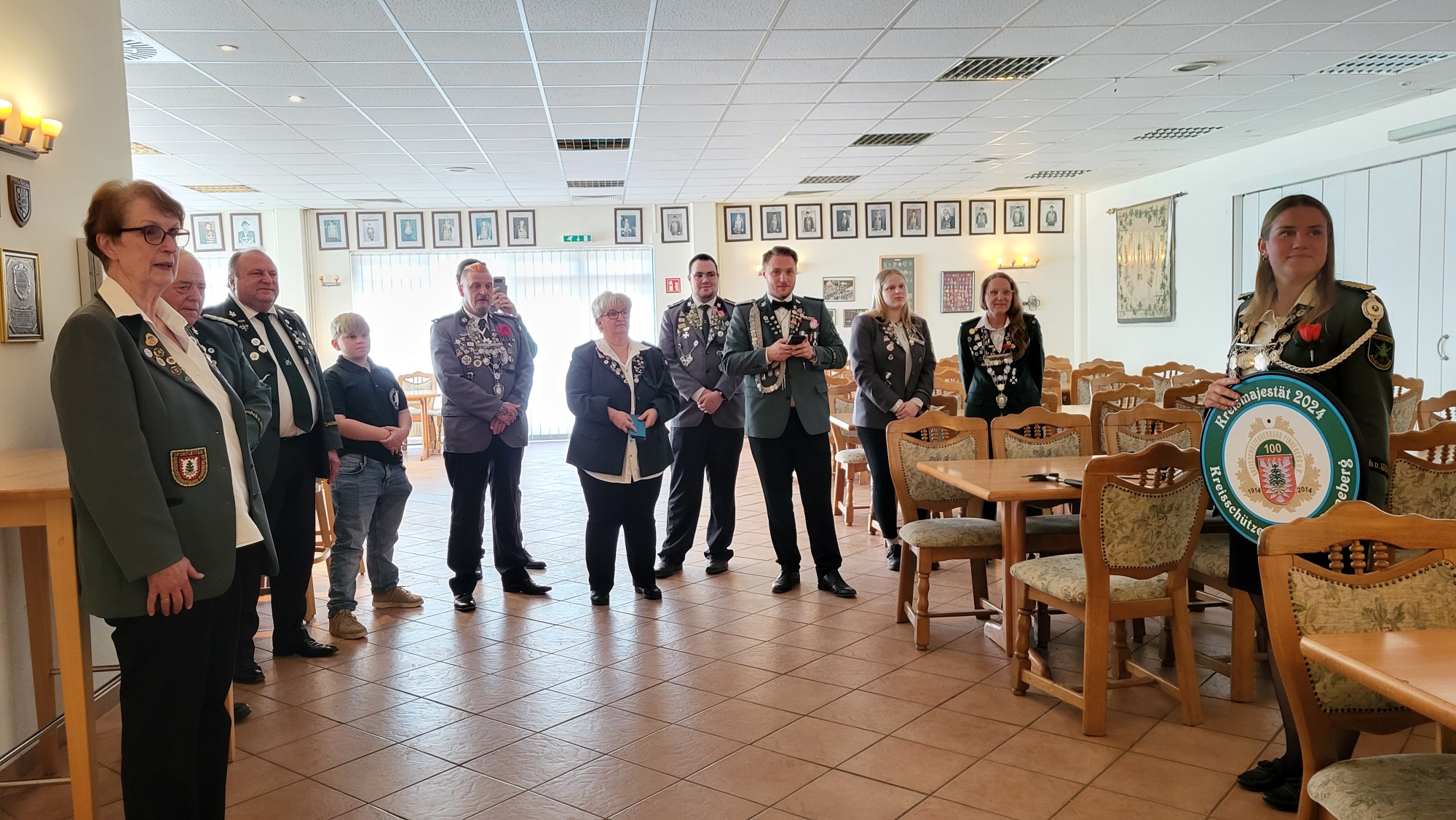Genau 45 Wochen und drei Tage nach ihrer Proklamation hat die Inhaberin der Kreiskönigsscheibe, Alyssa Janice Seidel, in ihren Heimatverein geladen, damit sie (die Scheibe) einen Ehrenplatz in Halstenbek bekommt.