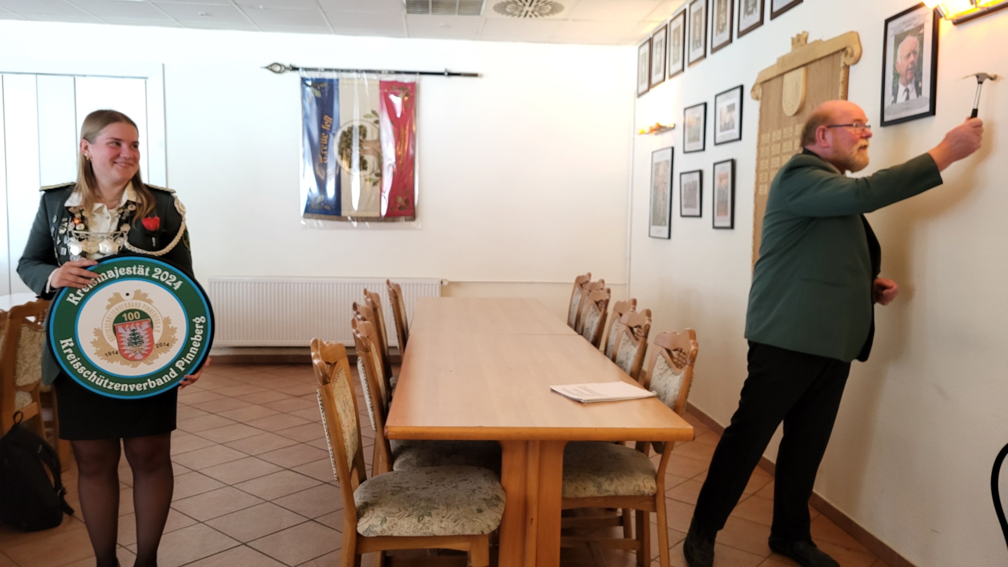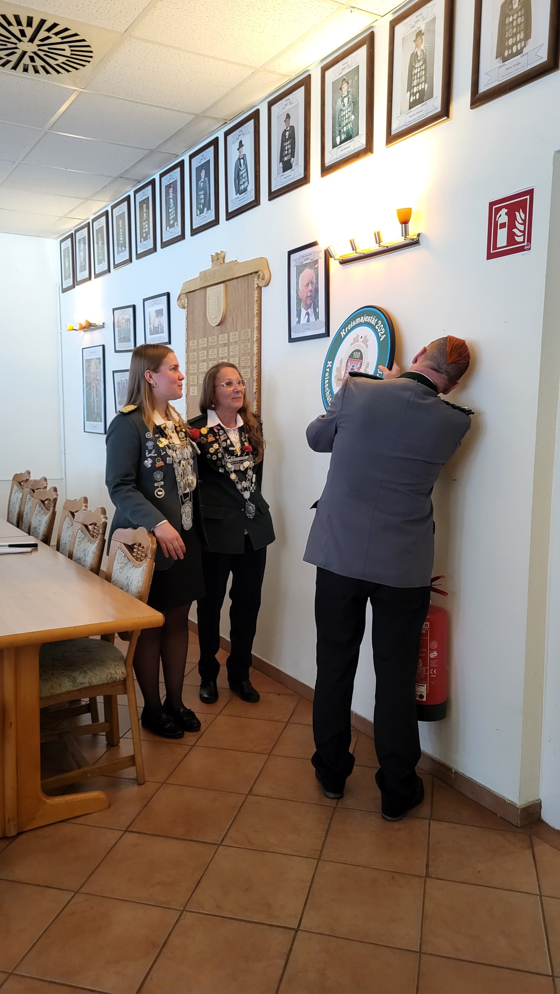 Die beiden Kreisritter überreichten anschließend noch ein Erinnerungsbild von der Proklamation, das schnell den richtigen Platz an der Wand gefunden hatte.