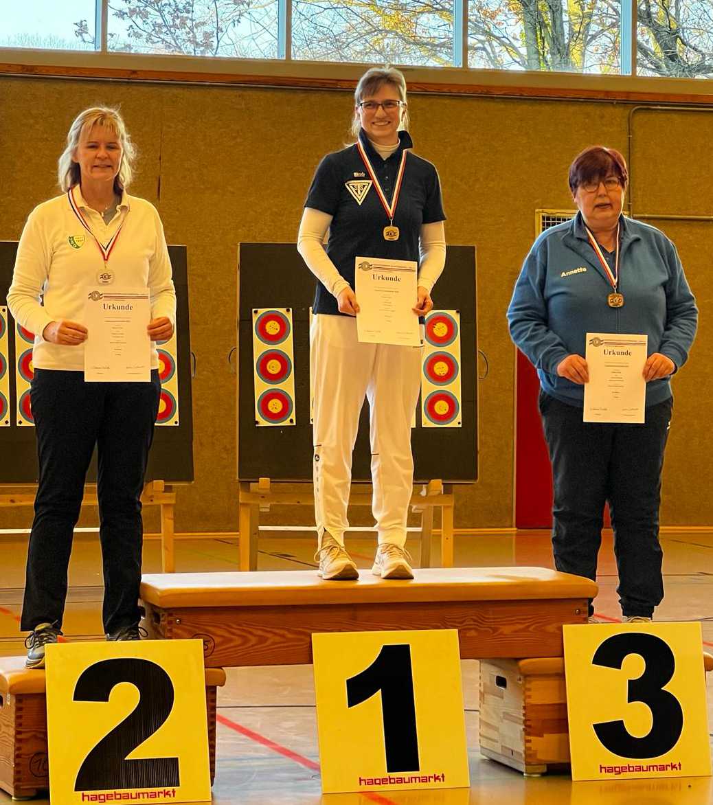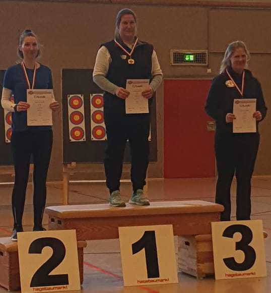 Bei den Recurve Master weiblich sicherte sich Birgit von Essen / USG den Titel Landesmeisterin, bei den Blankbogen Junioren errang Hanna Ewert / TuS Borstel Hohenraden diesen Titel.