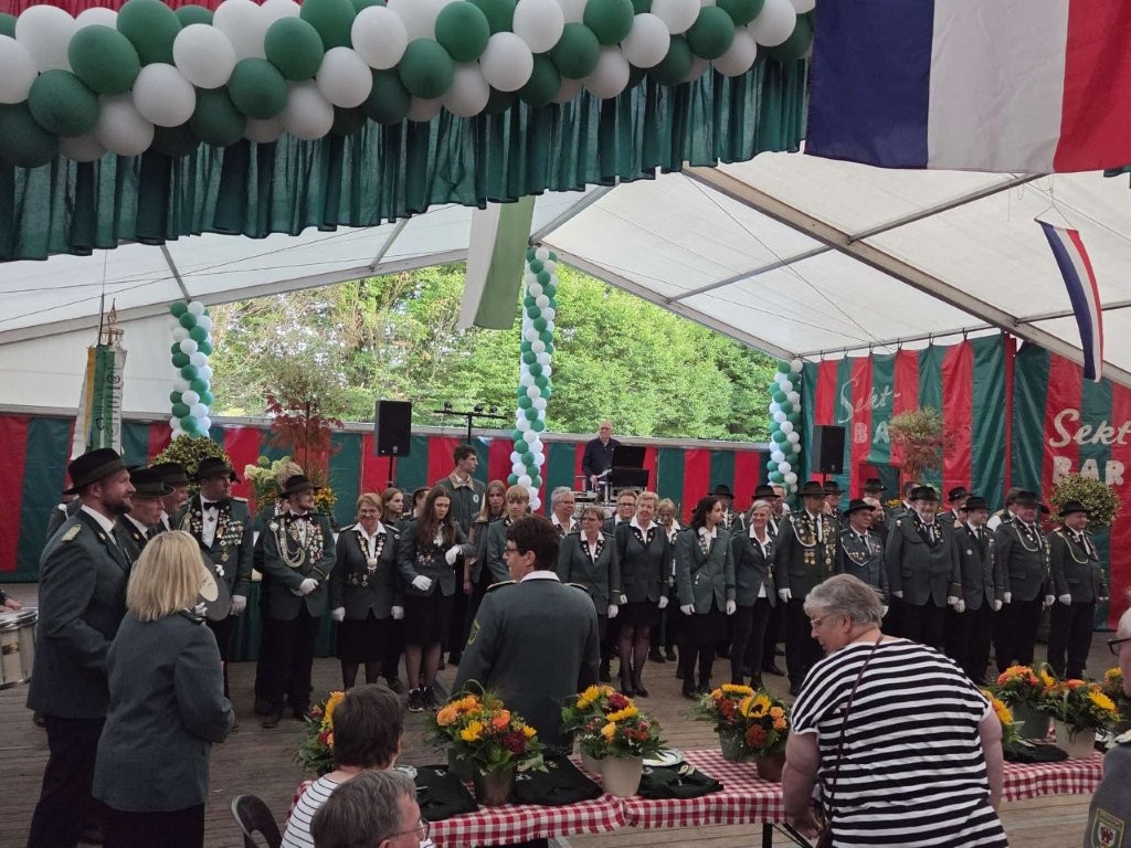 Der krönende Abschluss fand dann am Abend statt. Ab 18.00 Uhr war das Festzelt wieder mit Abordnungen der befreundeten Schützenvereine und Gilden, sowie zahlreichen Gästen und Besuchern des Festplatzes gefüllt. Nach Beendigung der musikalischen Begleitung das Musikcorps der Freiwilligen Feuerwehr Hanerau Hademarschen, das duch den Vor- und Nachmittag geführt hatte, übernahm der Musikzug Rellingen traditionsgemäß.