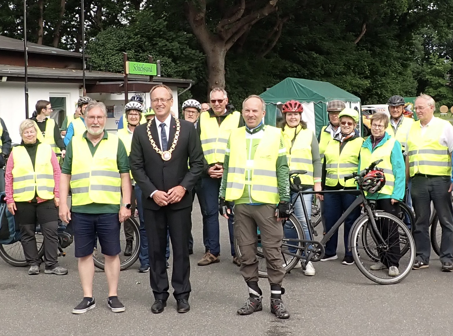 Mit der Begrüßung der Bürger und Schützenabordnungen sowie der weiteren Teilnehmer am Festumzug begann der Auftakt für den großen Festumzug durch die Gemeinde Halstenbek. Als Gäste waren der Kreispräsident Helmuth Ahrens, die Bürgervorsteherin der Gemeinde Halstenbek Katrin Ahrens und der Bürgermeister Jan Krohn, sowie das Ehrenmitglied des DSB, Gerhard Quast, anwesend.